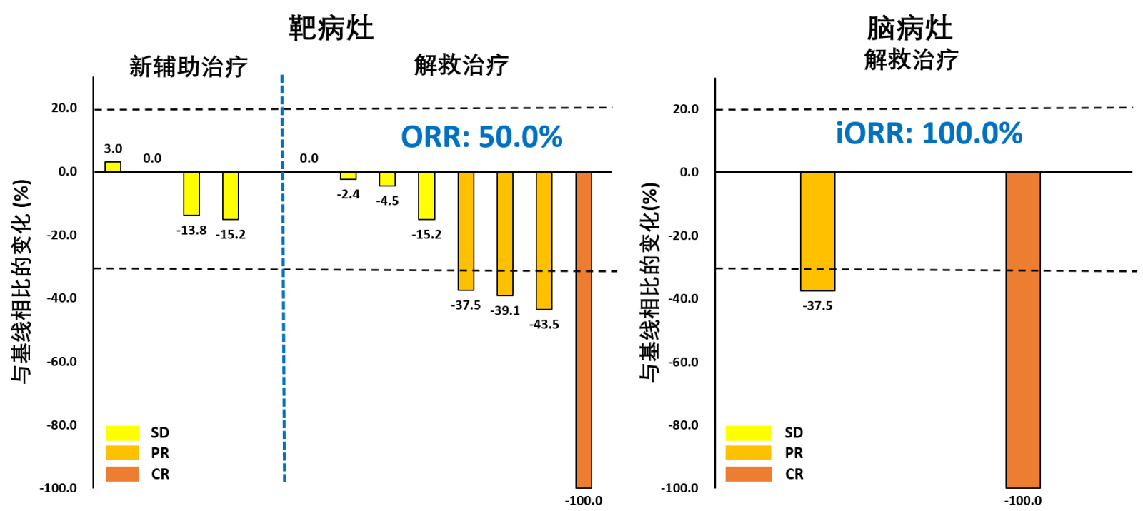 圖1.靶病灶與腦病灶直徑總和(SOD)最佳百分比變化瀑布圖